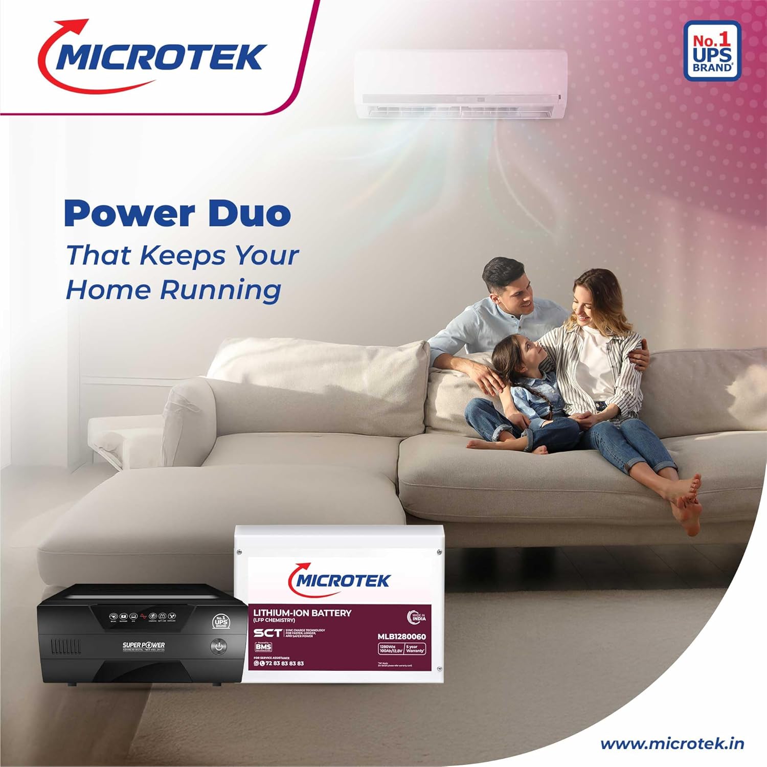 12.8V 100Ah Lithium-ion Battery: Comes with Microtek MLB1280060 Lithium Battery (12.8V, 100Ah) offering fast charging, deep discharge capability, high efficiency, and long cycle life.